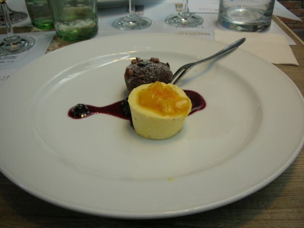 終於ㄚ主菜終於上來了@@!,經過這麼多道美味的餐點,總算輪到主角上場,"爐烤迷迭香味菲力佐紅酒洋蕈菇醬汁"旁邊則是馬鈴薯泥與甜薯泥,香煎微硬的培根包裹著還帶著美麗玫瑰紅的菲力,看啊!!!!多麼精彩的剖面圖,整塊的火侯多均勻ㄚ,就單純食材的鮮美,就深深的打動了我心,喔讚!