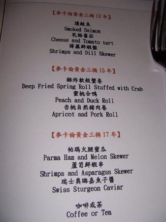 帕瑪火腿蜜瓜、蘆筍鮮蝦串、瑞士奧璐嘉魚子醬