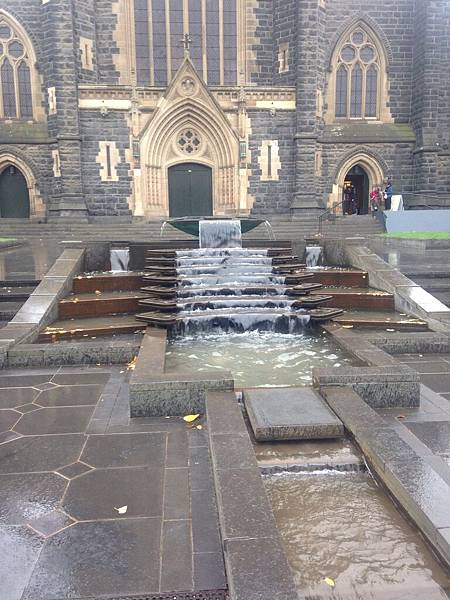 一到教堂前方隱入眼簾的是這個由上方階梯一路流下的水道,