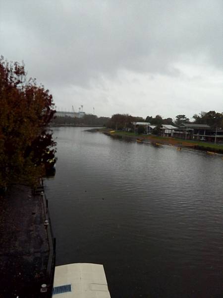 在路上經過的河岸真的很美,雖然有下著點點細雨,但還是看到旁邊河堤上有人在跑步。