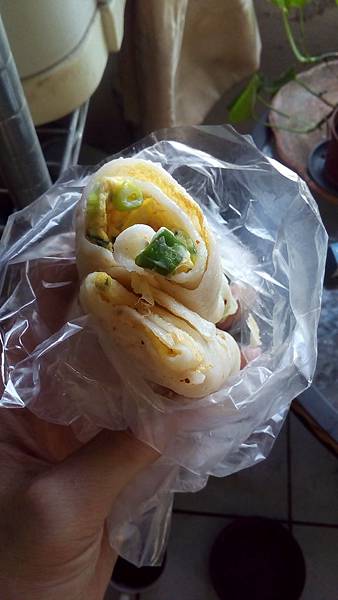 因為口味偏好的問題,所以第一天是外帶韭菜蛋餅跟粄條蛋餅。