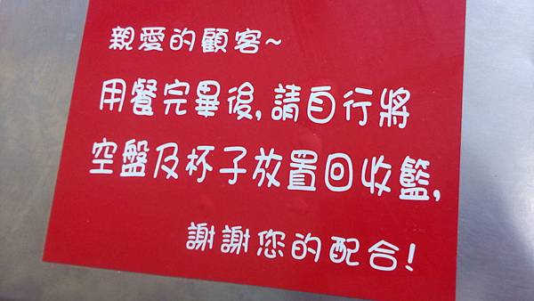 第二天在店裡內用,因為是自助式的請自己動手端盤子,吃完也記的收拾,謝謝。